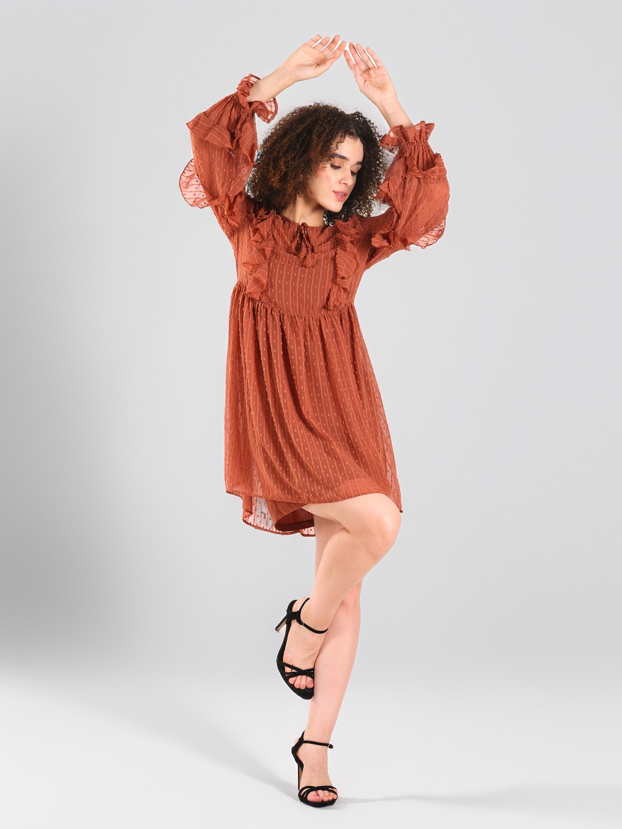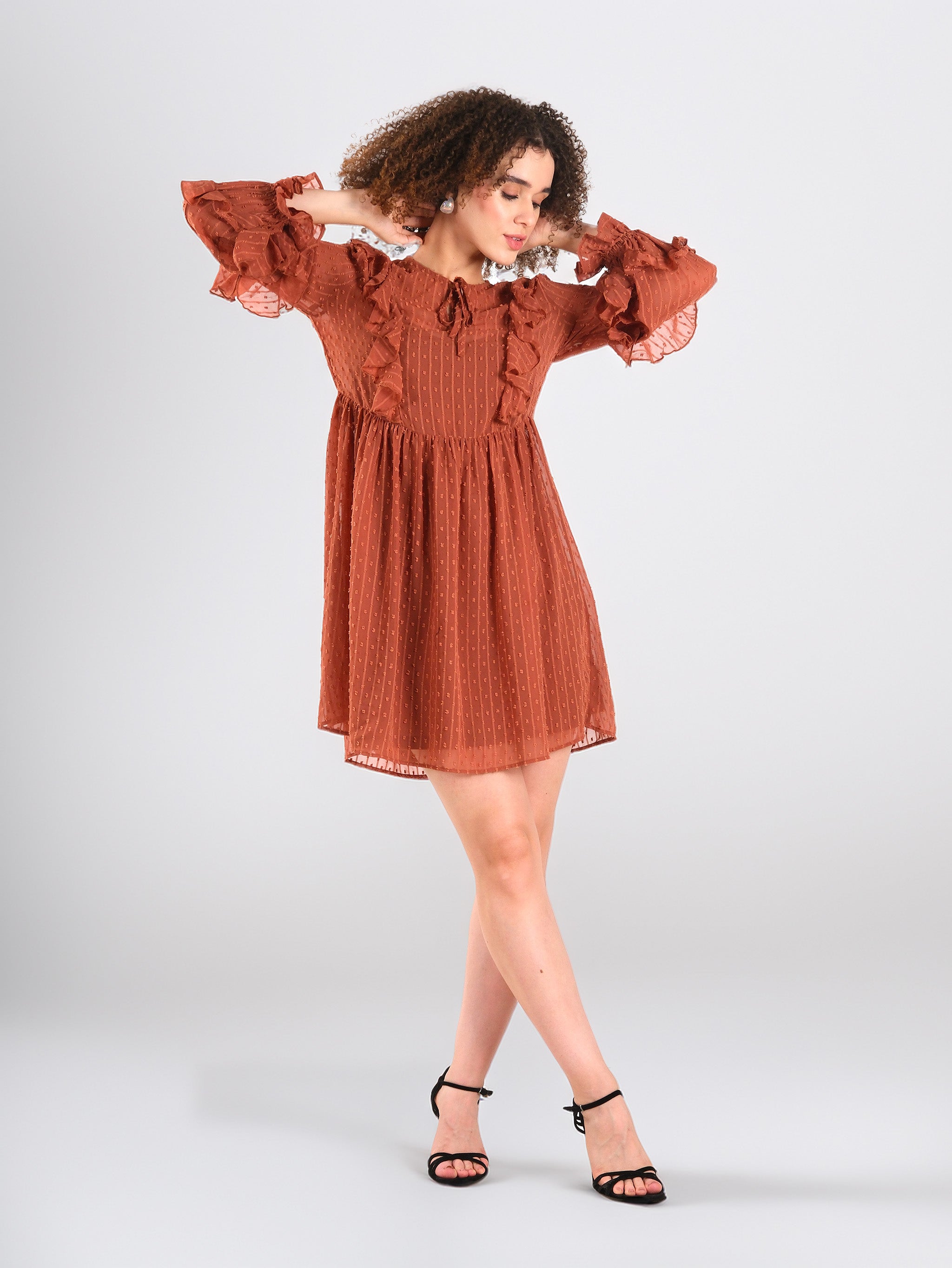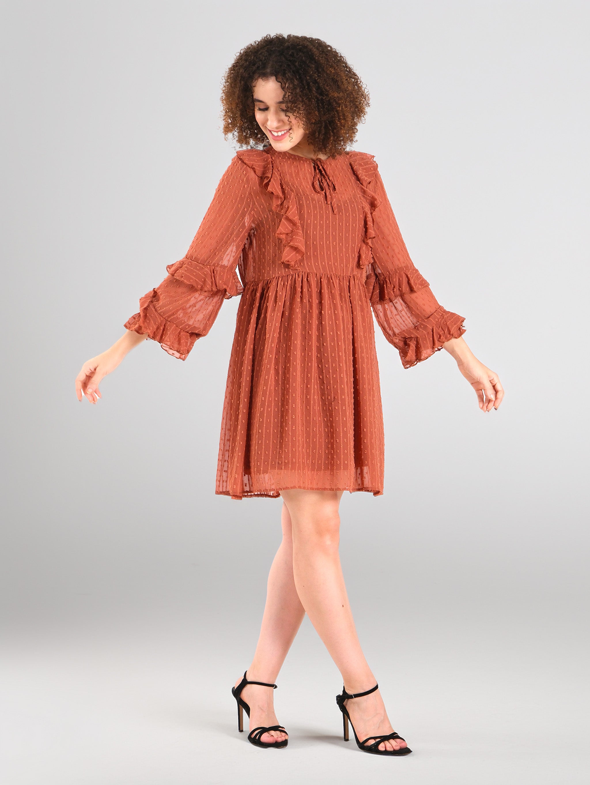Minivestido de gasa con volantes en tono óxido
