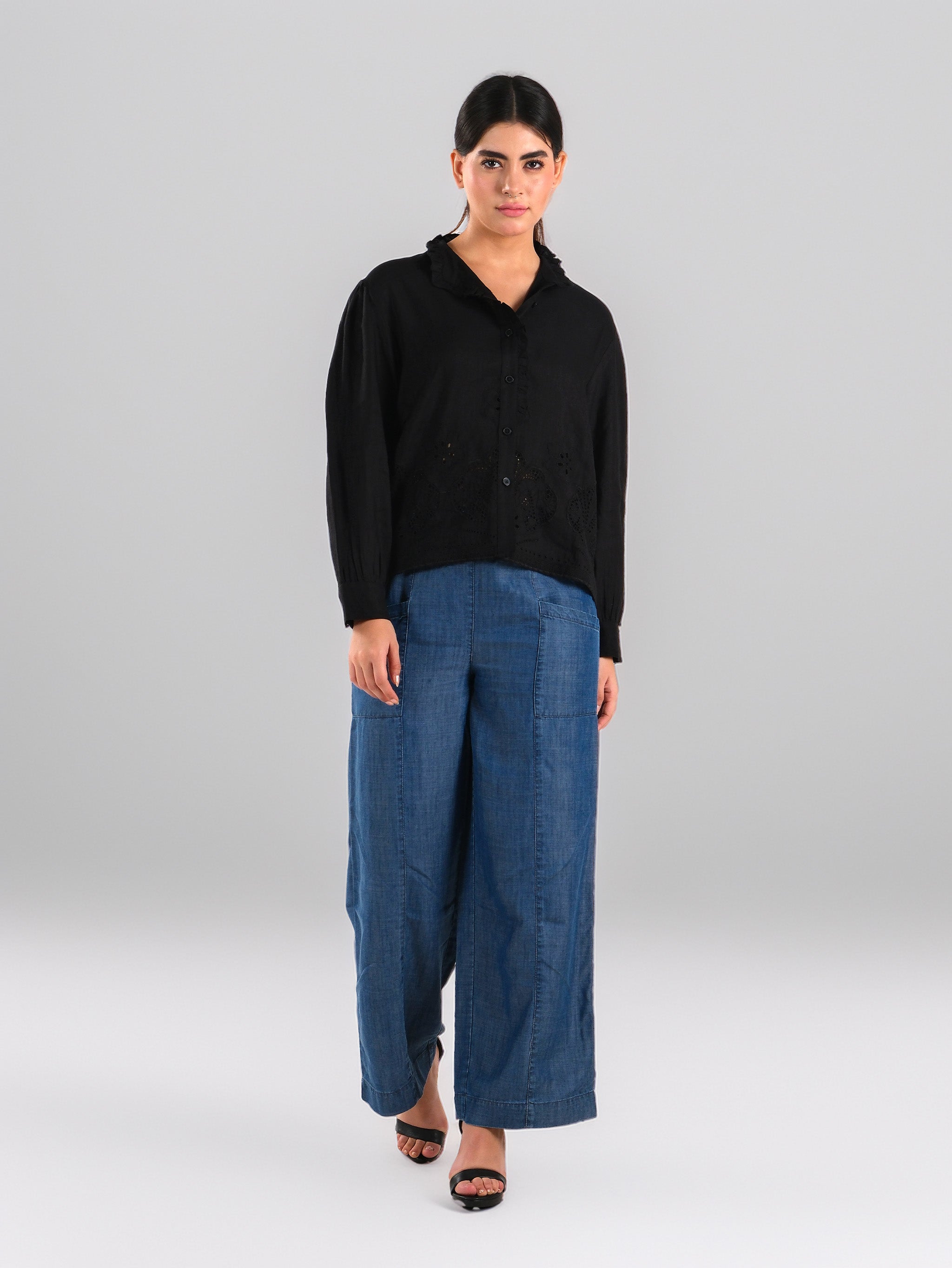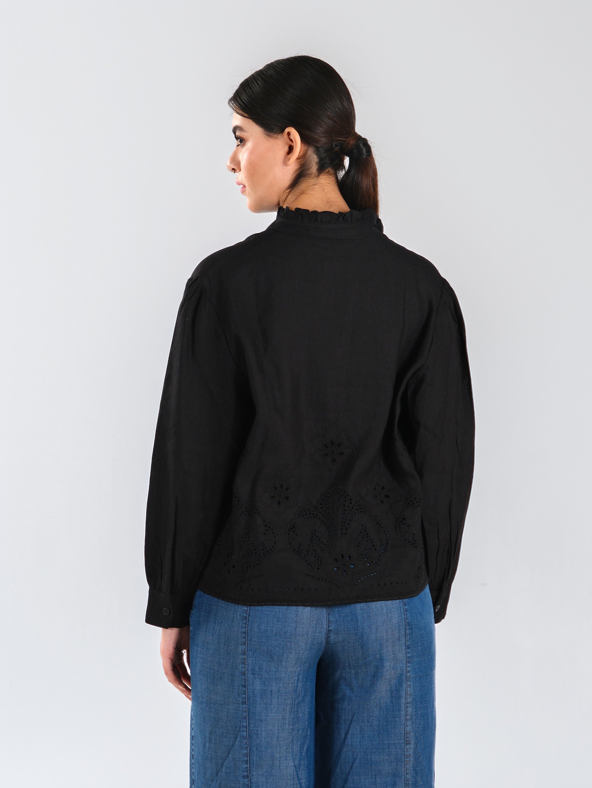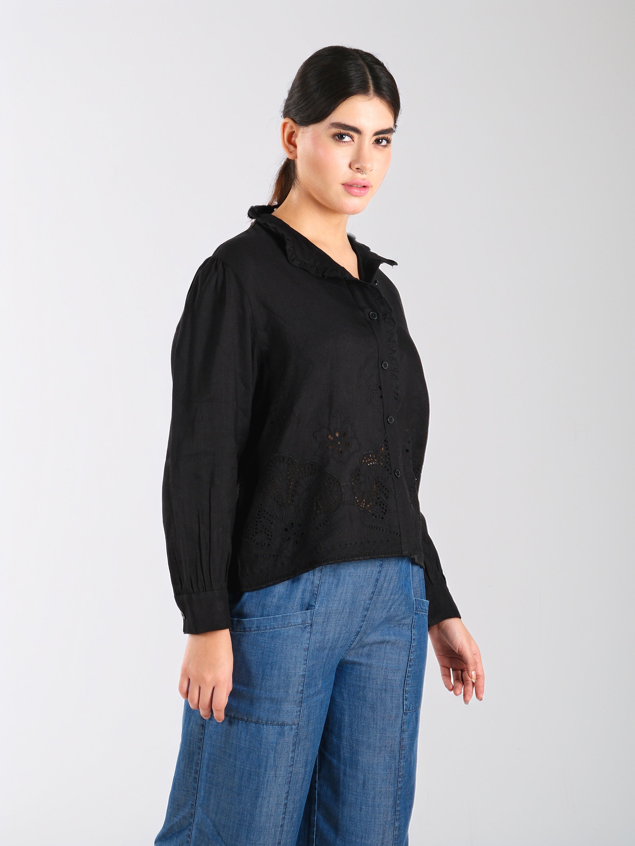 Camisa de algodón Schiffli negra