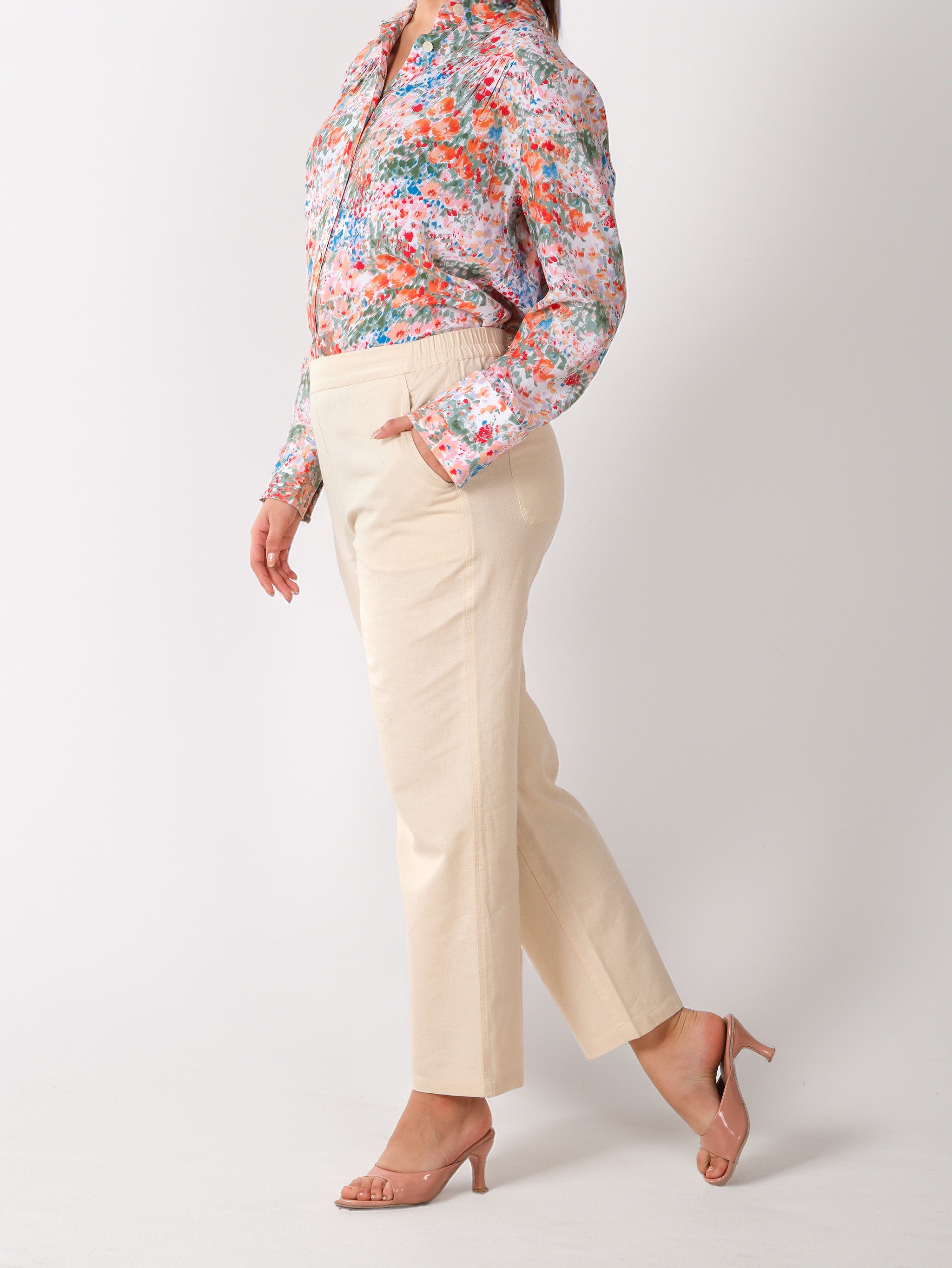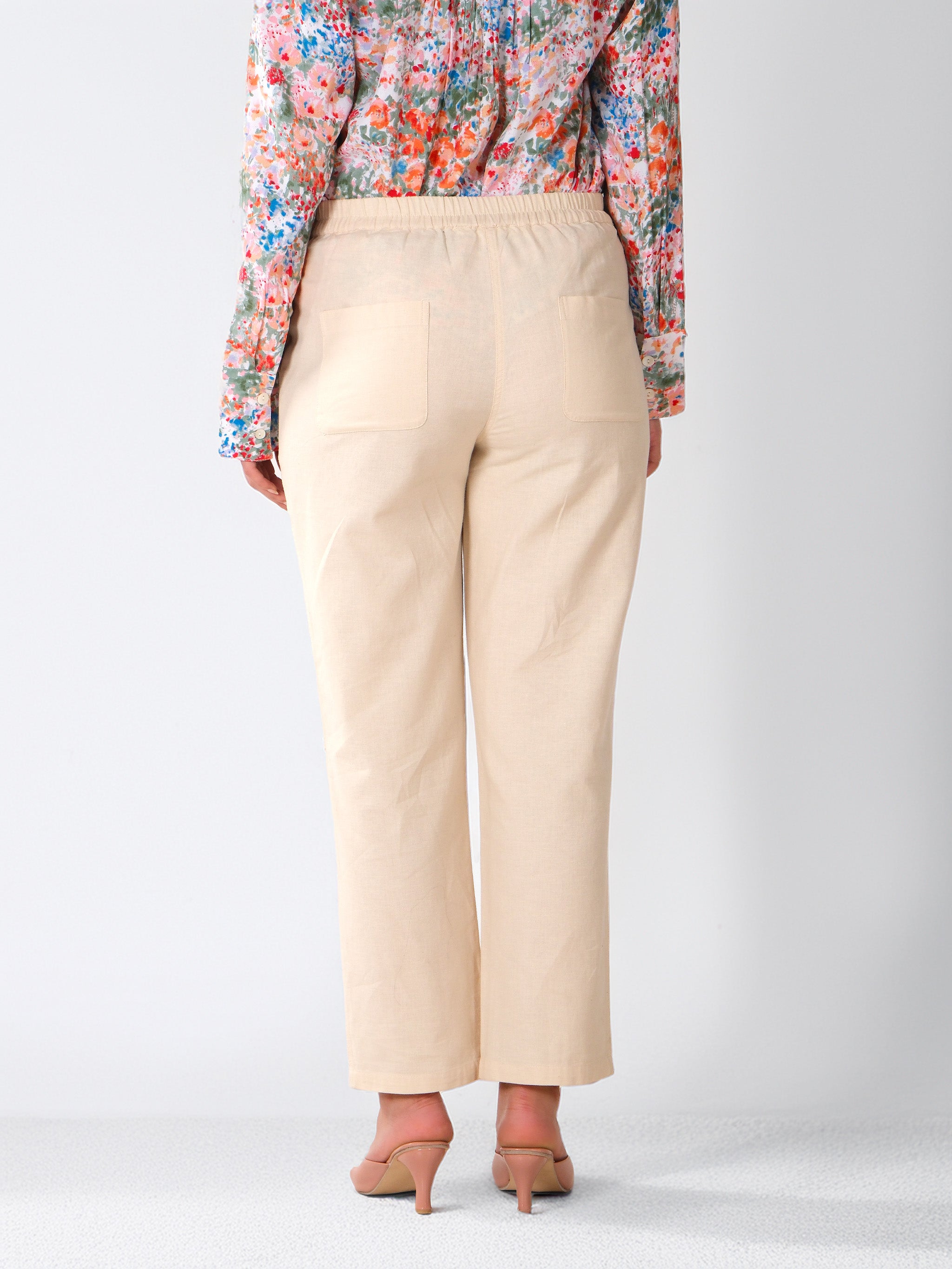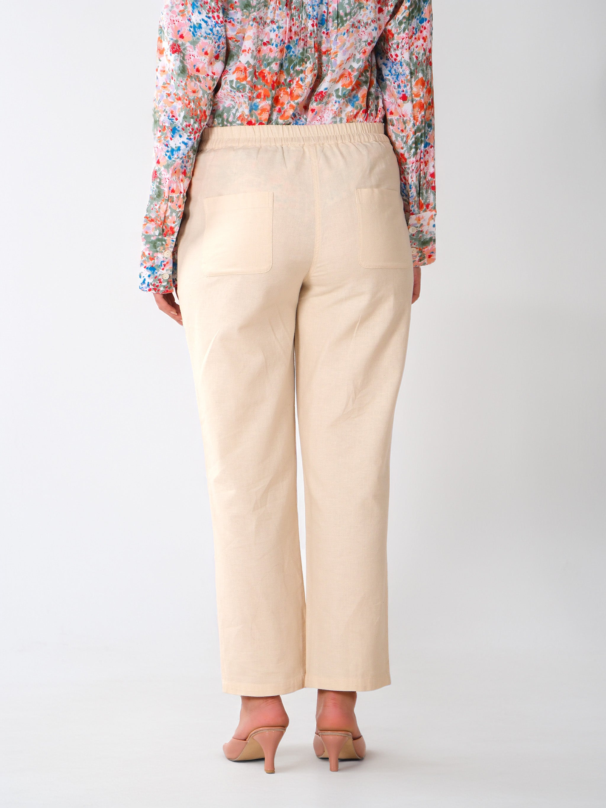 Confectionné dans un tissu respirant en mélange de coton, ceinture élastiquée pour une coupe décontractée et facile à enfiler, silhouette à jambes droites avec une finition avant soignée, poches latérales fonctionnelles pour plus de praticité, équilibre parfait entre confort et sophistication.