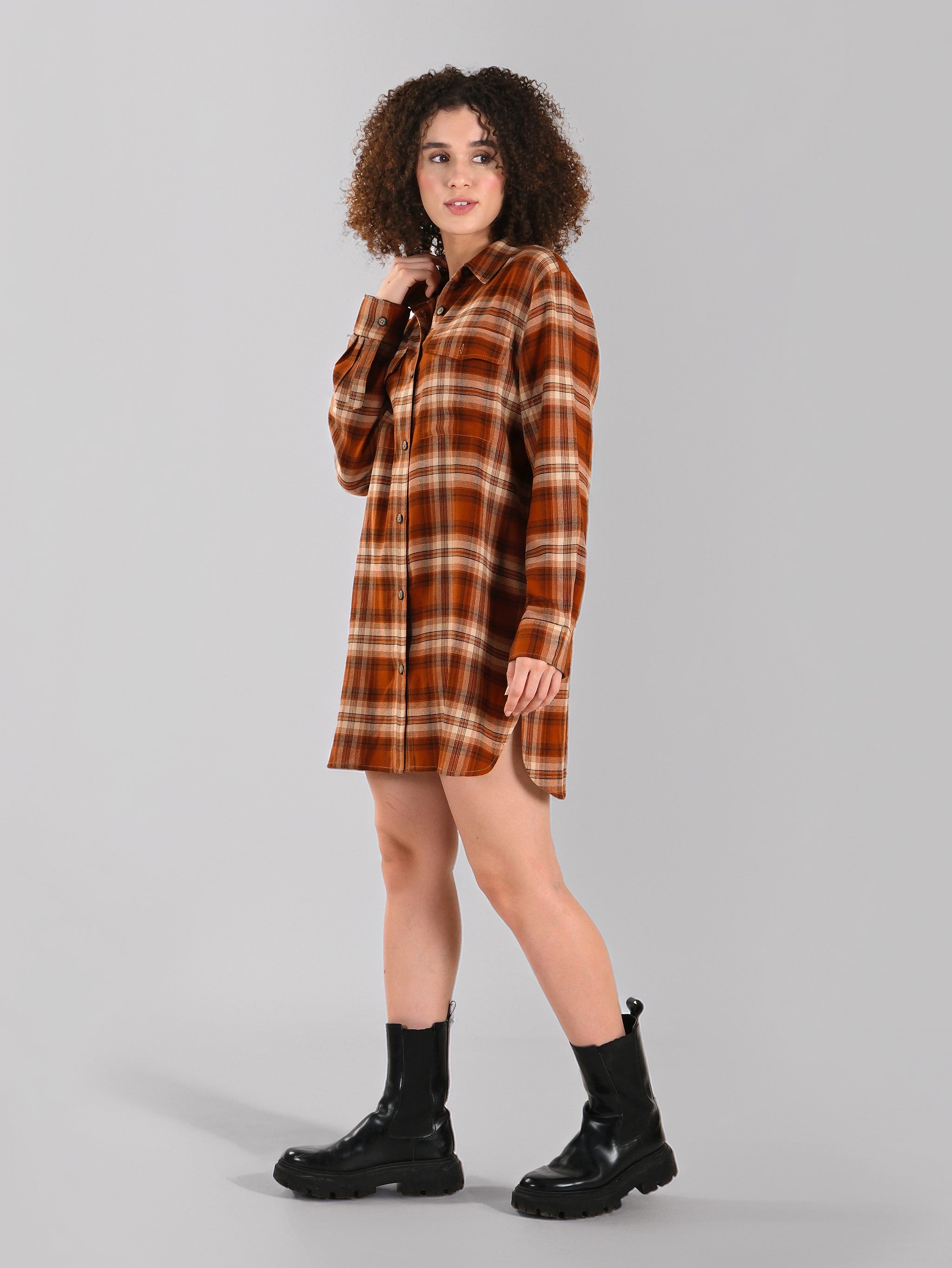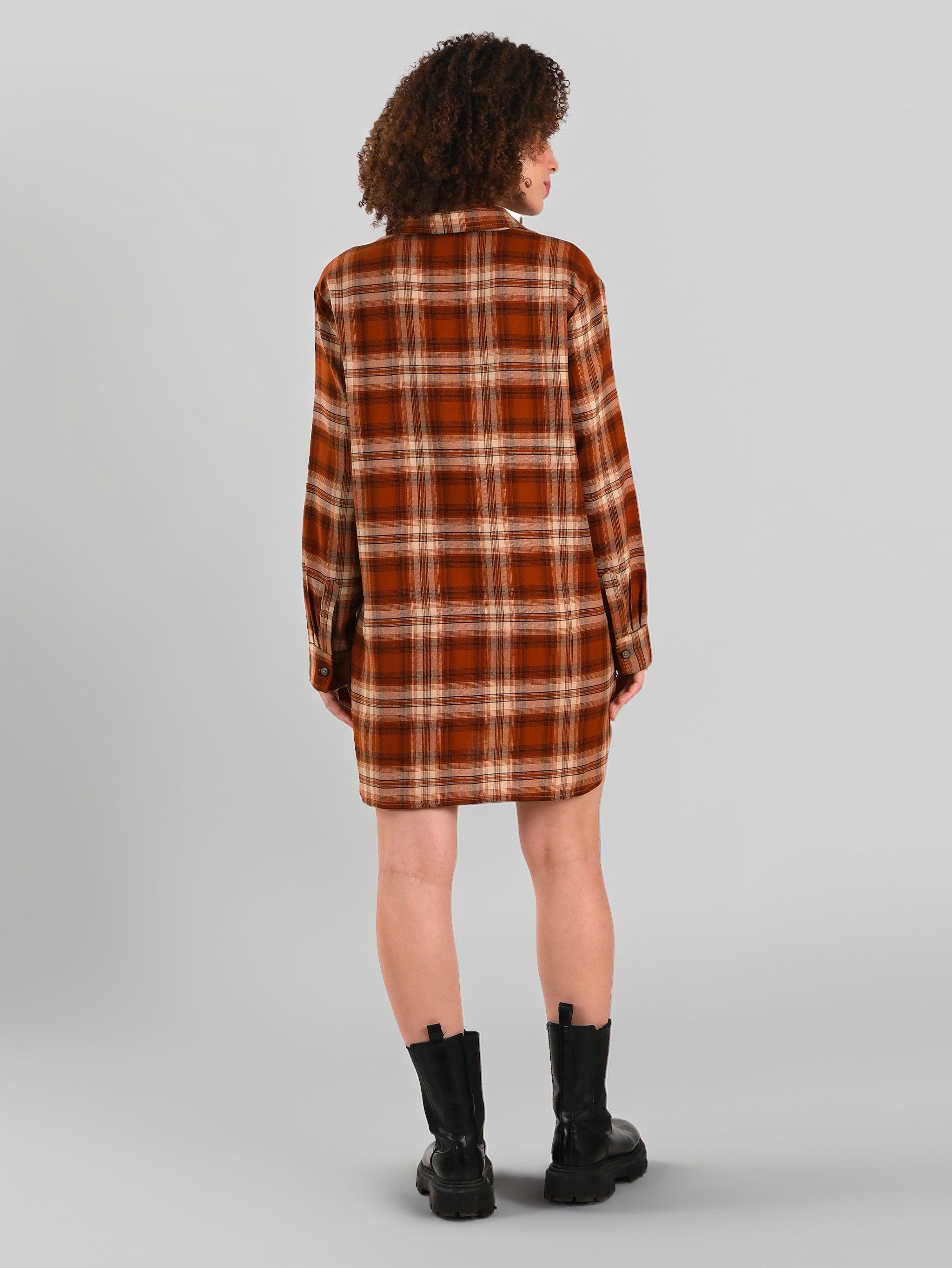 Robe chemise en flanelle à carreaux rouille