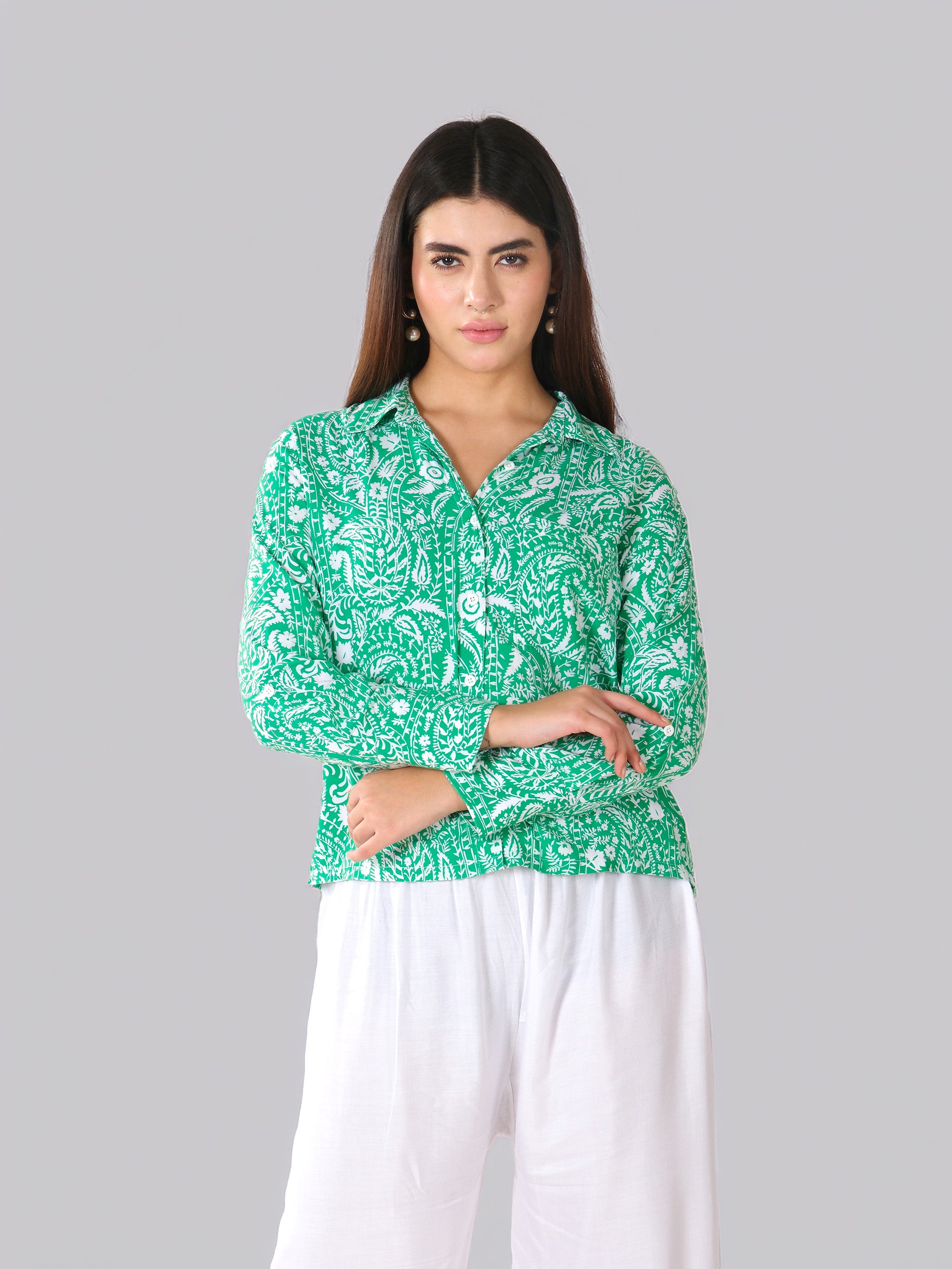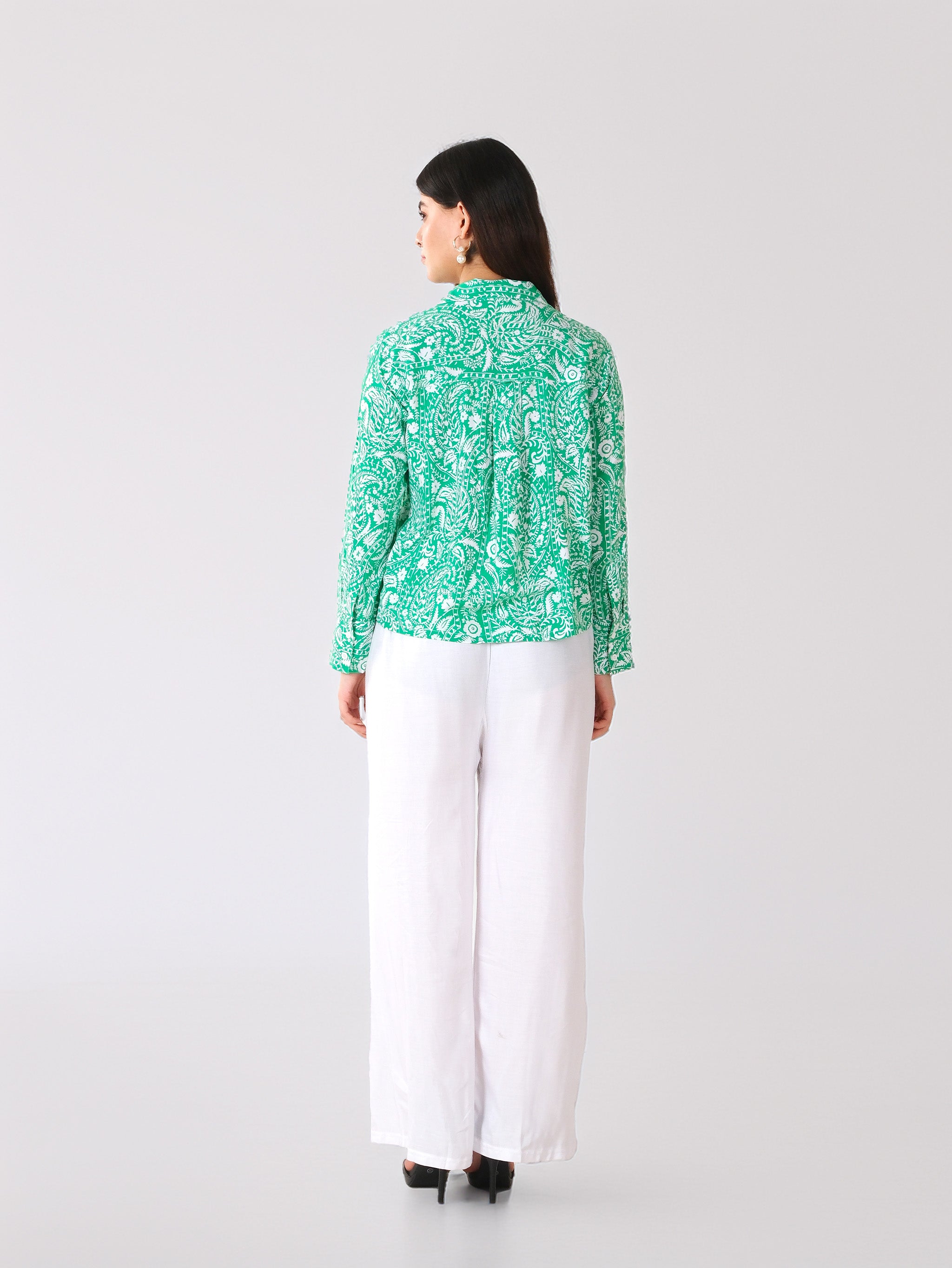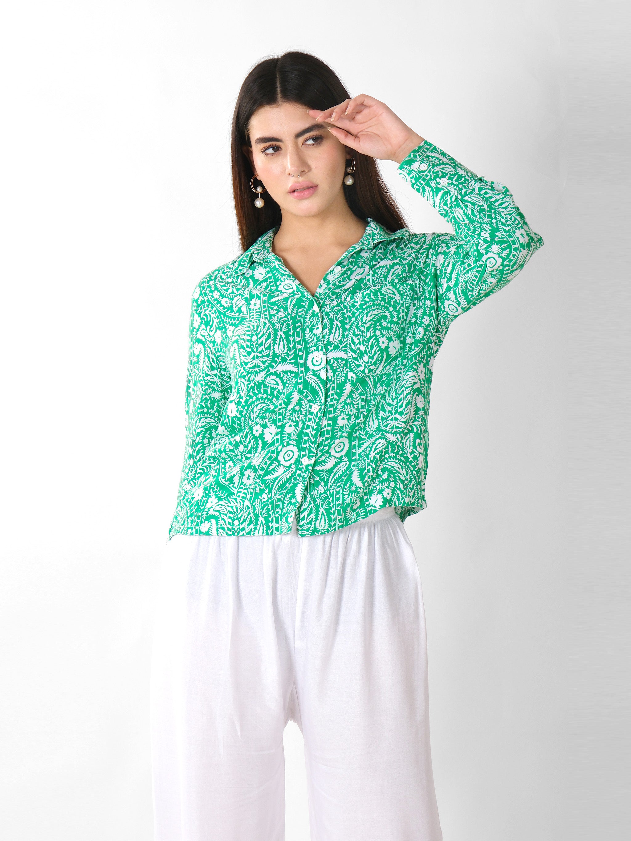Chemise en coton imprimée à motifs cachemire verts