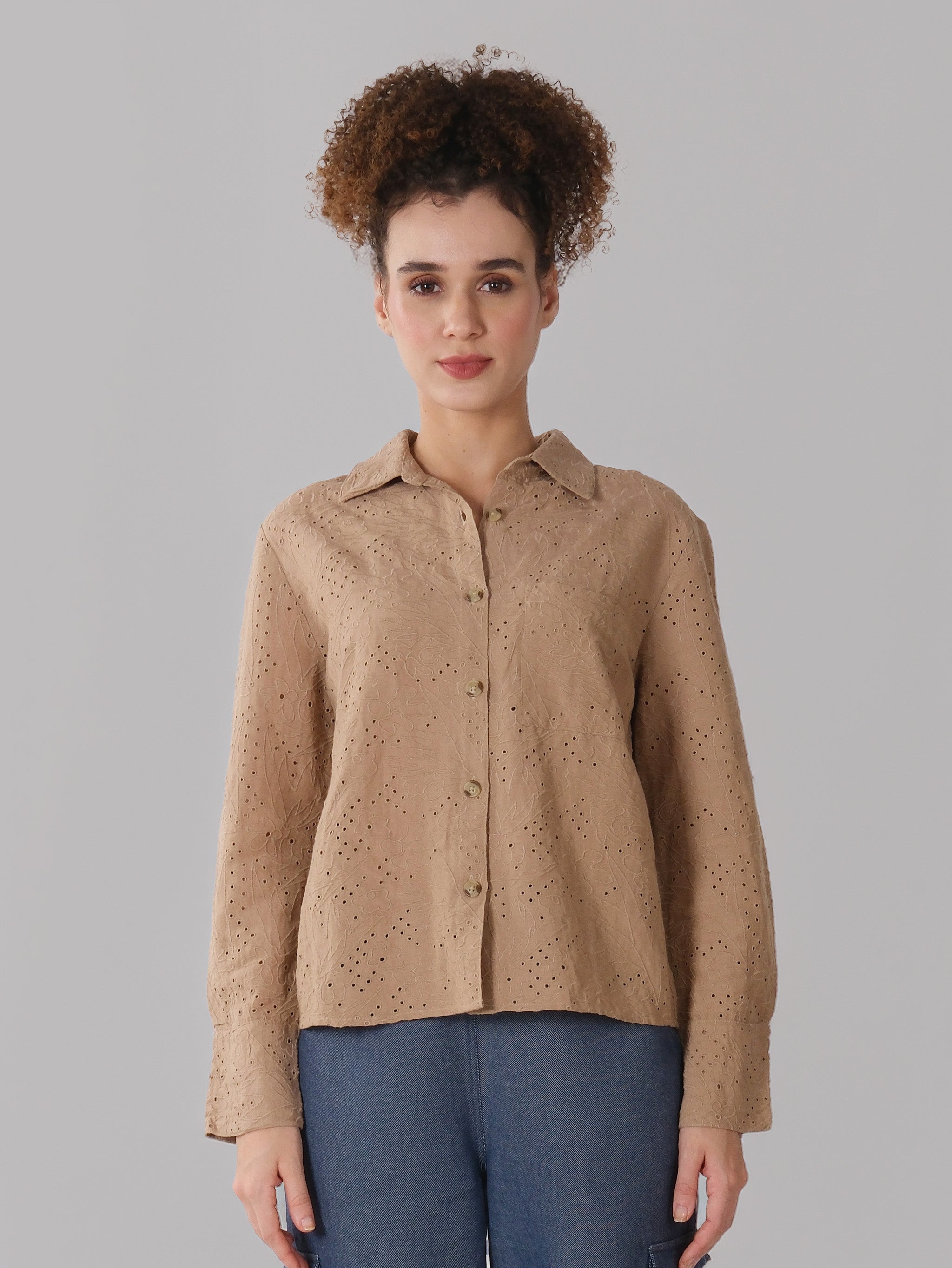 Light Brown Schiffli Shirt