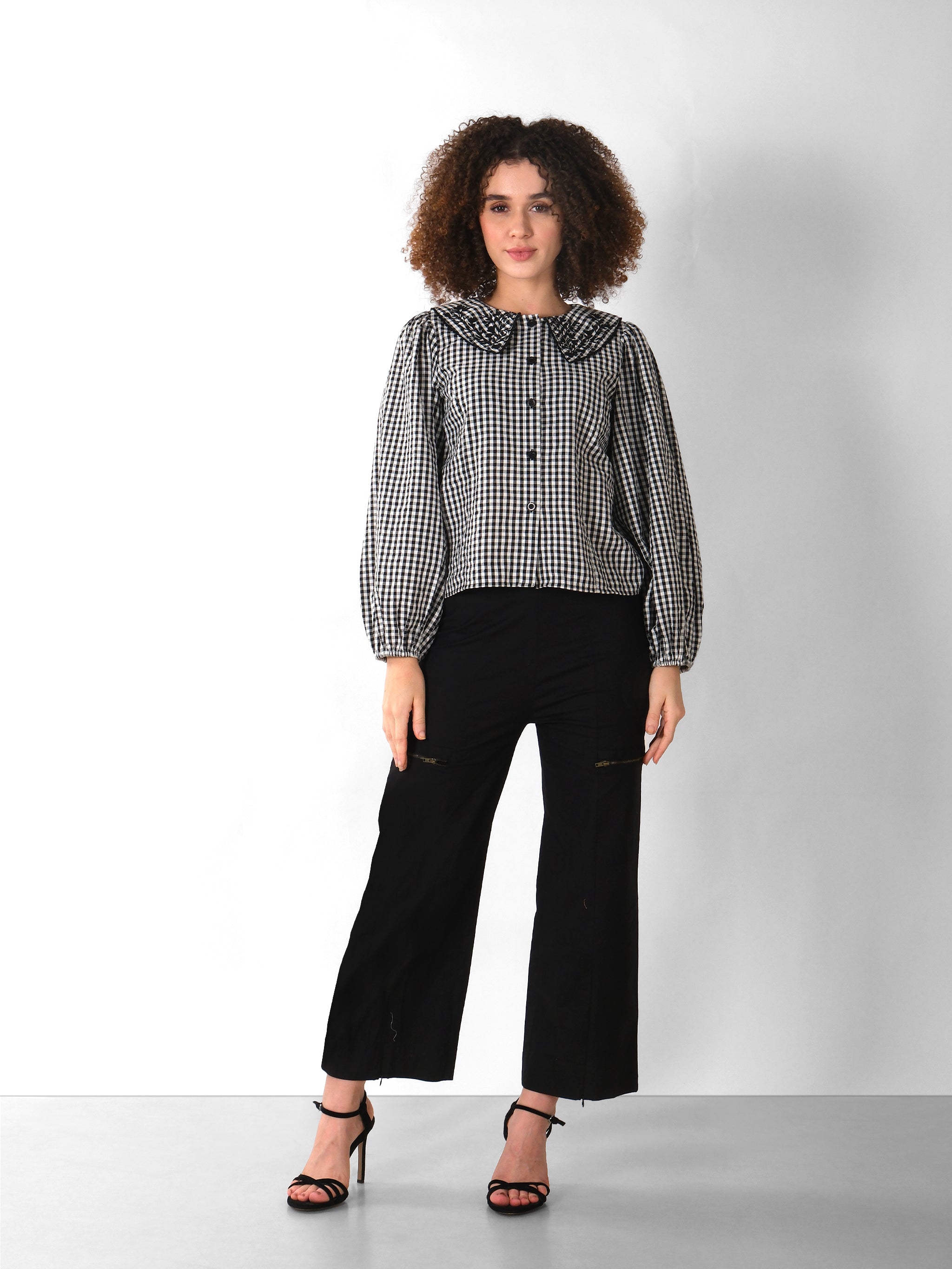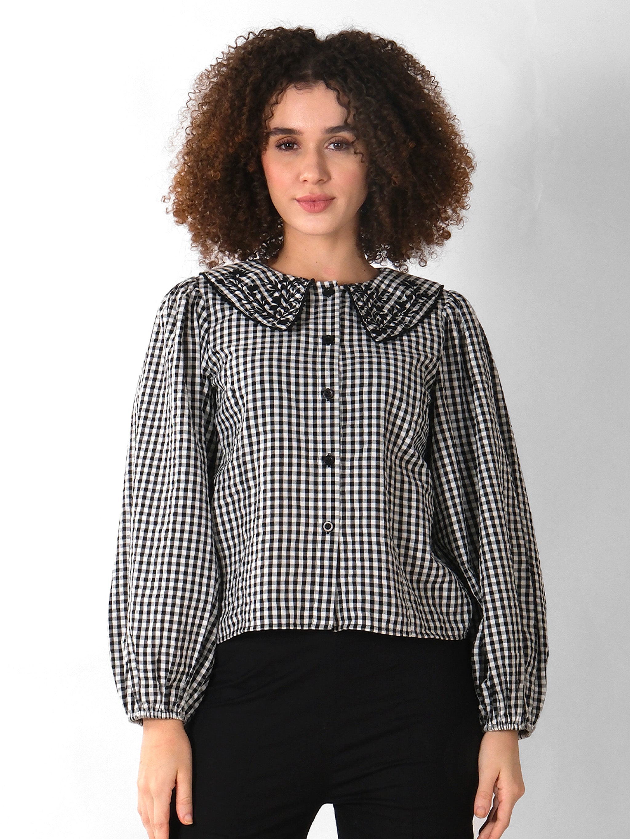 EMBROIDERED COLLAR CHECK SHIRT